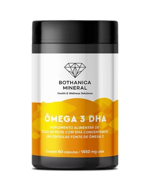 O ÔMEGA 3 DHA da Bothanica Mineral foi formulado com óleo de peixe purificado e concentrado, oferecendo uma proporção elevada de DHA (ácido docosa-hexaenoico) e EPA (ácido eicosapentaenoico) — ácidos graxos essenciais que fazem parte de uma rotina nutricional equilibrada.